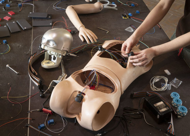 L’esposizione, a cura di Diana Baldon, presenta una nuova installazione site-specific commissionata da Fondazione Modena Arti Visive, incentrata sul progetto più recente di Geumhyung Jeong. L’artista si è distinta a livello internazionale nell’ambito delle arti performative per le sue coreografie allo stesso tempo divertenti e inquietanti in cui si esibisce con apparecchi elettronici con sembianze umanoidi. Combinando diversi mezzi espressivi – danza, teatro, film e scultura – l’artista realizza le sue opere con una varietà di dispositivi protesici, strumenti hardware meccanici e tecnologici, cosmetici, manichini medici, inserendo performance dal vivo che “dimostrano” come i suoi oggetti possano essere utilizzati. Quando li presenta in contesti dedicati alle arti visive, l’artista dispone gli oggetti secondo strane sequenze e li ordina su piedistalli all’interno di ambienti molto illuminati, imitando gli archivi scientifici e le collezioni museali.
