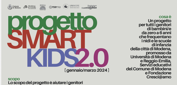 Sta per partire “Smartkids 2.0”, progetto rivolto a tutti i genitori dei bambini da zero a sei anni d’età che frequentano i nidi e le scuole d’infanzia della città di Modena. L’obiettivo del progetto, promosso da Università di Modena e Reggio Emilia insieme a Servizi educativi del Comune di Modena e Fondazione Cresci@amo, giunto alla seconda edizione, è limitare l’eccessiva esposizione dei bambini da 0 e 6 anni ai dispositivi elettronici, con particolare attenzione agli smartphone.