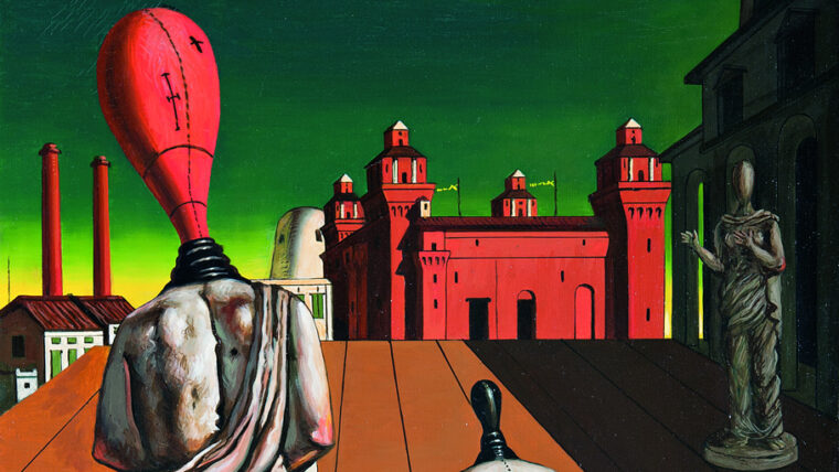 Dopo gli studi accademici ad Atene e a Monaco di Baviera, dove scoprì Nietzsche e Böcklin, sviluppò uno stile visionario caratterizzato da piazze vuote, prospettive inquietanti, statue antiche e manichini enigmatici. Le sue opere dei primi anni 1910, come Le muse inquietanti e La nostalgia dell’infinito, divennero punti di riferimento per le avanguardie europee. E’ tra gli ispiratori del movimento del Surrealismo.